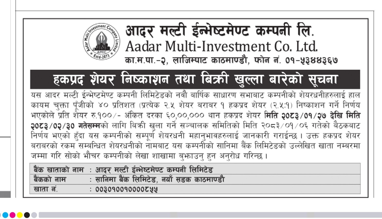 © 2026 प्रतिलिपि अधिकार आदर मल्टिइन्भेष्टमेन्ट कम्पनी लिमिटेड